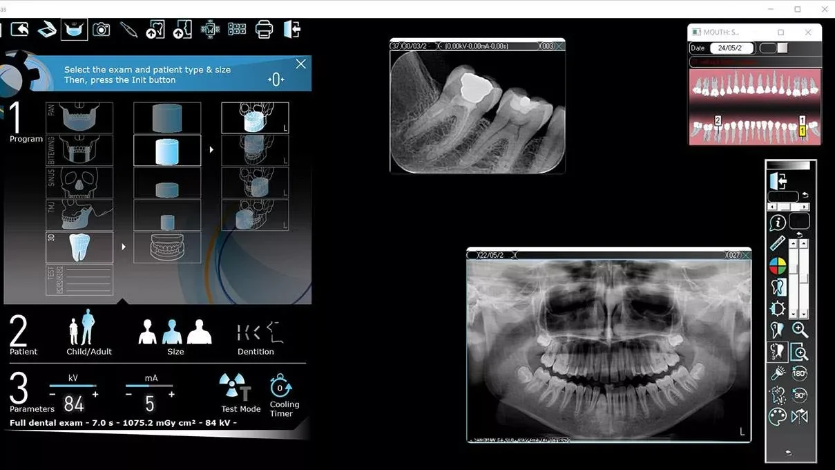 QuickVision imaging software is especially designed for dental surgeries. It includes a patient database, an imaging module and a dental diagram.